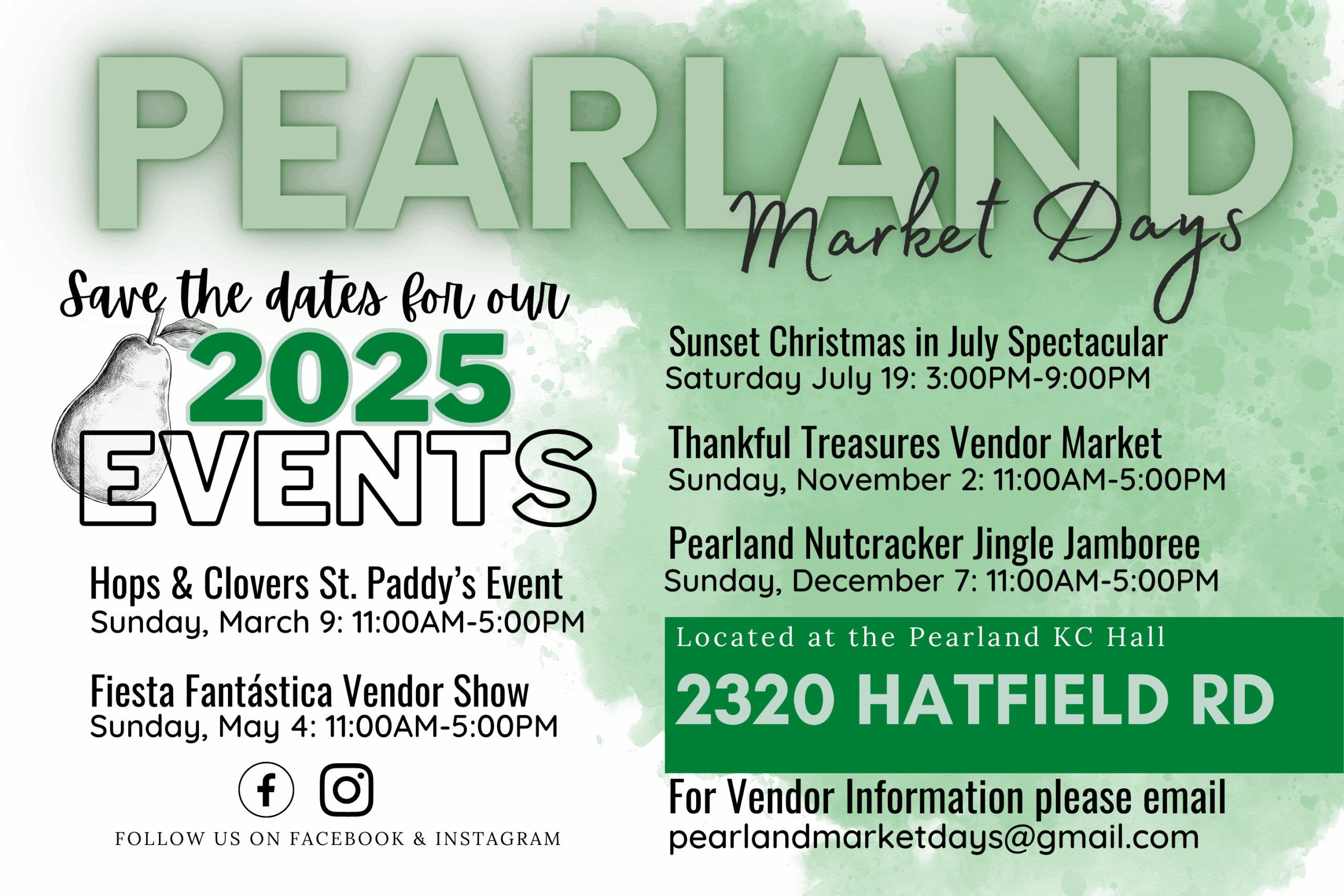 PUBILC EVENT-MARKET DAYS 11:00 am – 5:00 pmNovember 2, 2025 PEARLAND MARKET DAYS iCal Google Calendar View full calendar